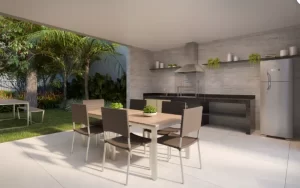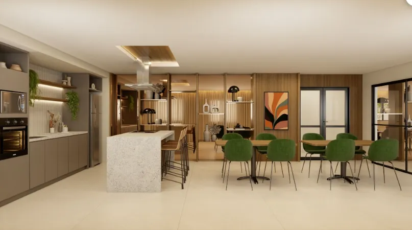 As unidades de 24m² a 29m² são entregues com piso laminado no dormitório, piso cerâmico no terraço e banheiro, cooktop elétrico, chuveiro elétrico, persiana de enrolar e infraestrutura para ar-condicionado. O condomínio conta com piscina, fitness, espaço wellness, coworking, lavanderia by Omo, mini market 24h, salão de festas, espaço gourmet, churrasqueira, pet place, redário e bicicletário.