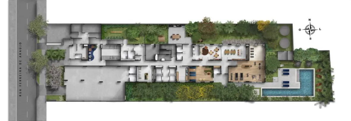 Apartamento de 1 dormitório com varanda na Rua Ferreira de Araújo, uma das localizações mais valorizadas de Pinheiros. A região oferece fácil acesso por metrô, ciclovias e vias importantes da cidade, além de estar a 8 minutos do Sesc Pinheiros.