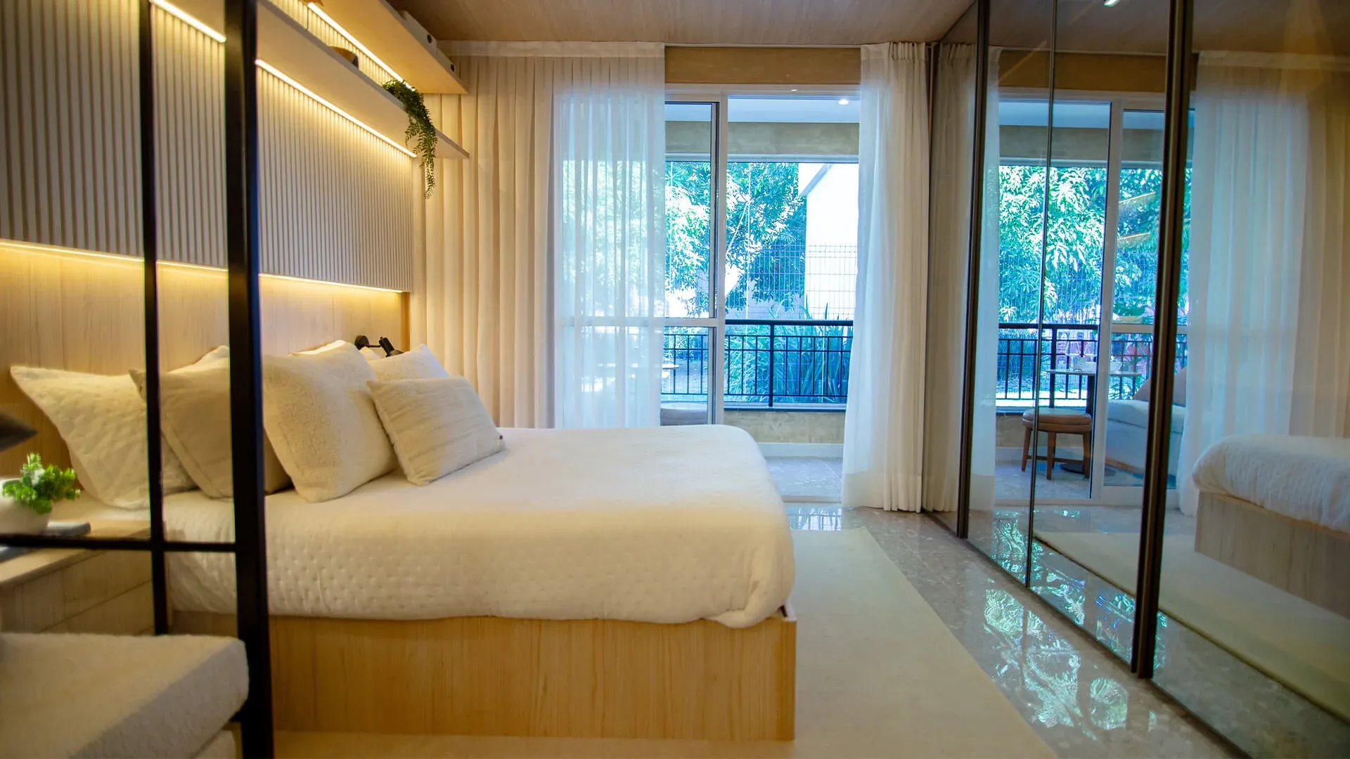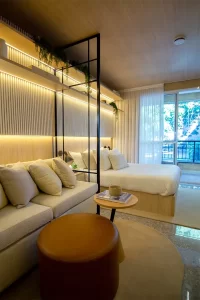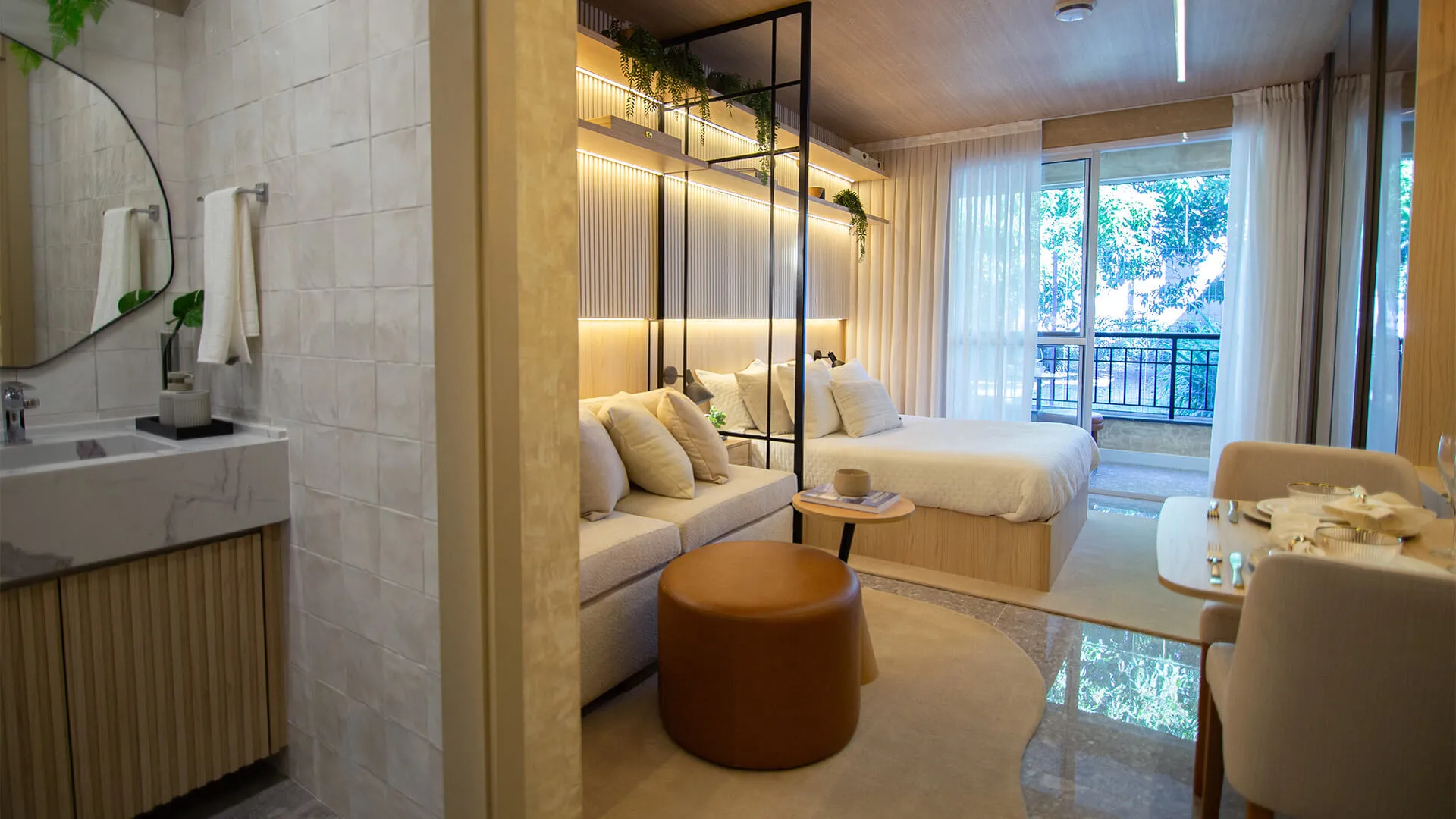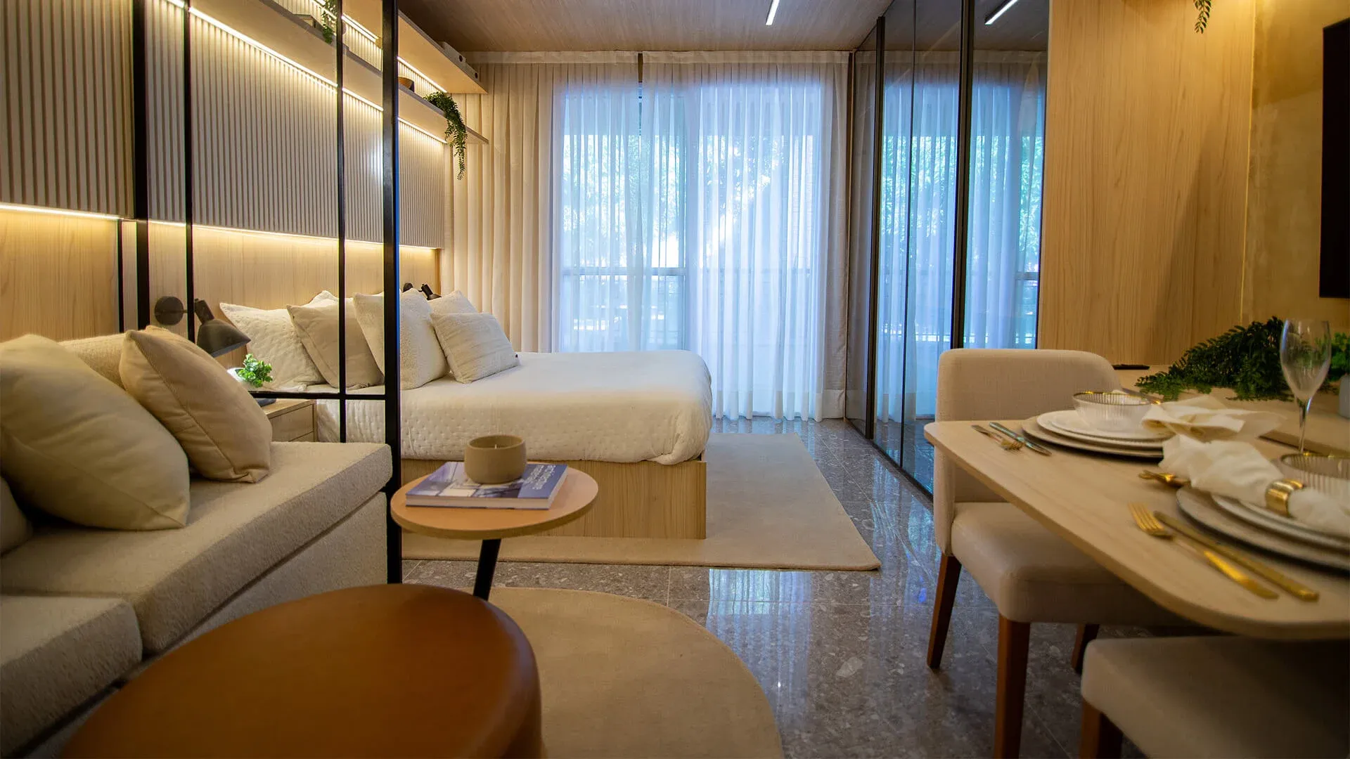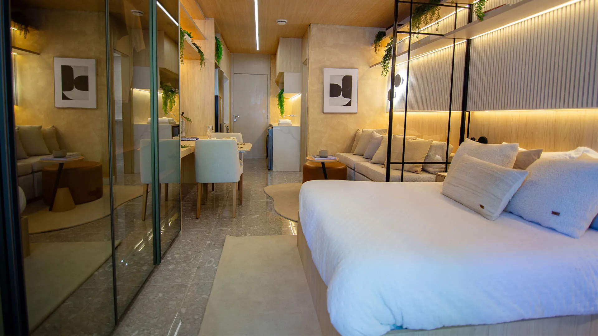 - Layout funcional com living, dormitório e copa integrados
