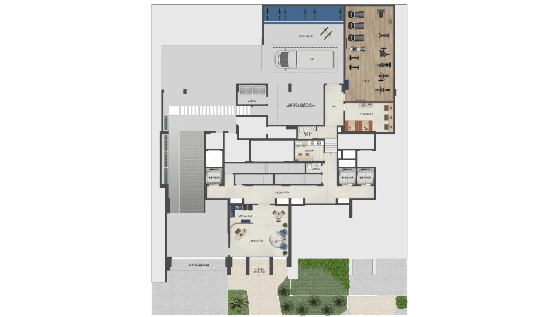O empreendimento oferece infraestrutura pensada para o dia a dia urbano: fitness equipado, coworking, laundry compartilhada, bicicletário e rooftop. As unidades contam com sacada e previsão para ar-condicionado e máquina lava e seca.